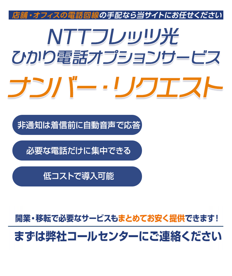 ナンバー・リクエストは、電話番号を非通知でかけてきた相手に対し、着信前に自動音声で応答するNTT西日本 ひかり電話のオプションサービスです。